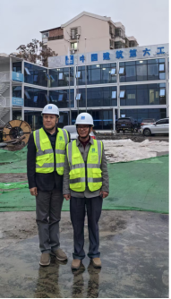 抵达现场后,吴绍兵董事长深入一线,详细询问了工程质量管控、施工安全保障及后续工程计划等情况,马总就工程进度、施工工艺以及材料应用等方面进行了汇报。